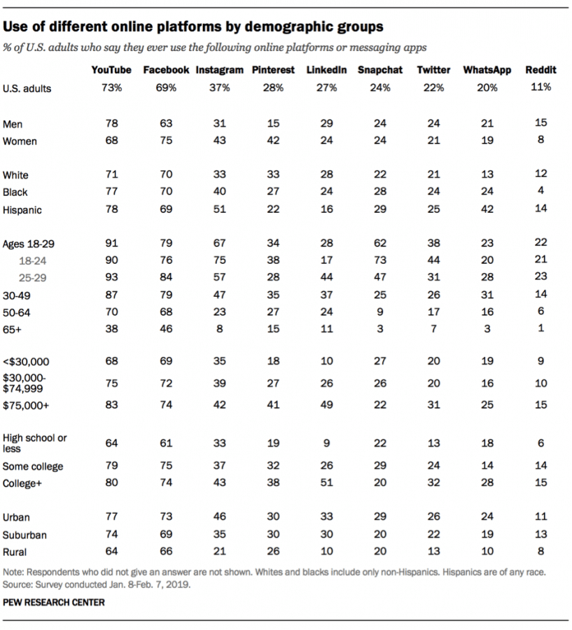 Use of Different Online Platforms by Demographic Groups | © Pew Research Center